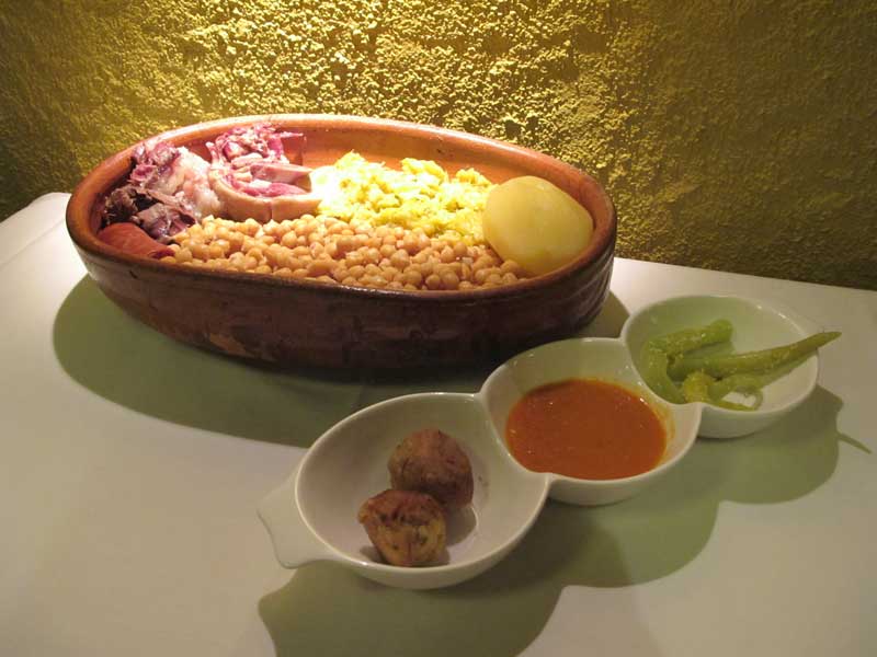 Cocido madrileño al fuego durante 24 horas en puchero de barro y lumbre de leña del restaurante El Pajar de Fuente Hernando
